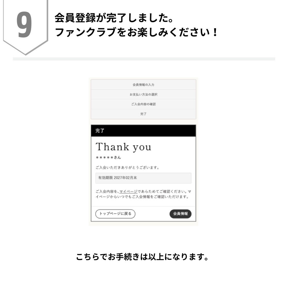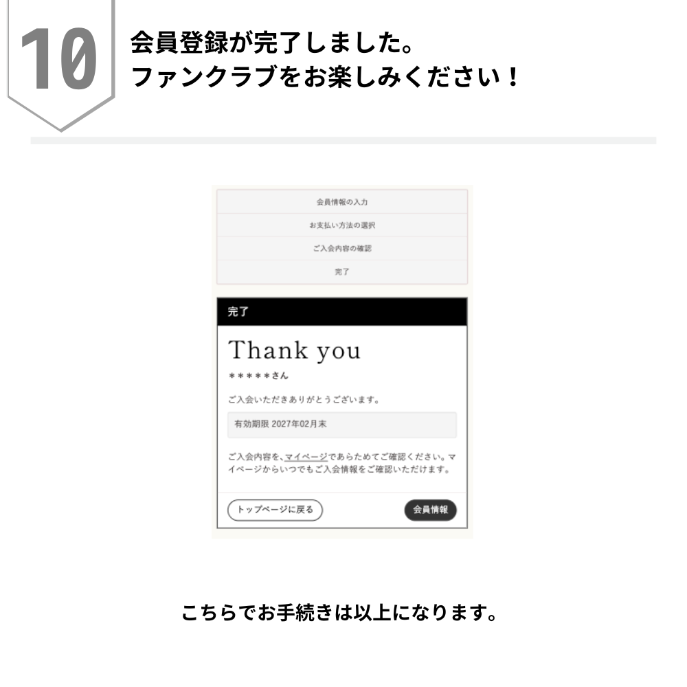 →2027年3月1日〜2027年3月31日の間に、同じBitfan IDで「グッズ付き年額コース」にご登録ください
